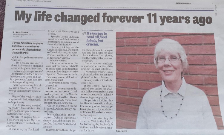 Rugby Cafe Writer Kate A. Harris is featured in this week’s Rugby Advertiser. Kate, a former employee of the newspaper, has written an article about her experience after being diagnosed as a coeliac and having to switch to a strict gluten-free diet. She describes the diagnosis as “the day my life changed forever”.