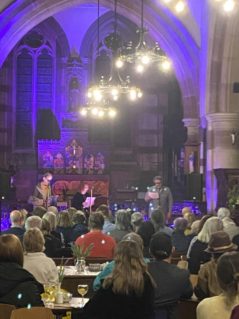 About 75 people enjoyed An Evening with the Rugby Cafe Writers at St Andrew’s Church, Rugby on Friday October 3rd. The event was part of the Rugby Literary Festival and featured stories, poems, memoir and music from members of the group.
